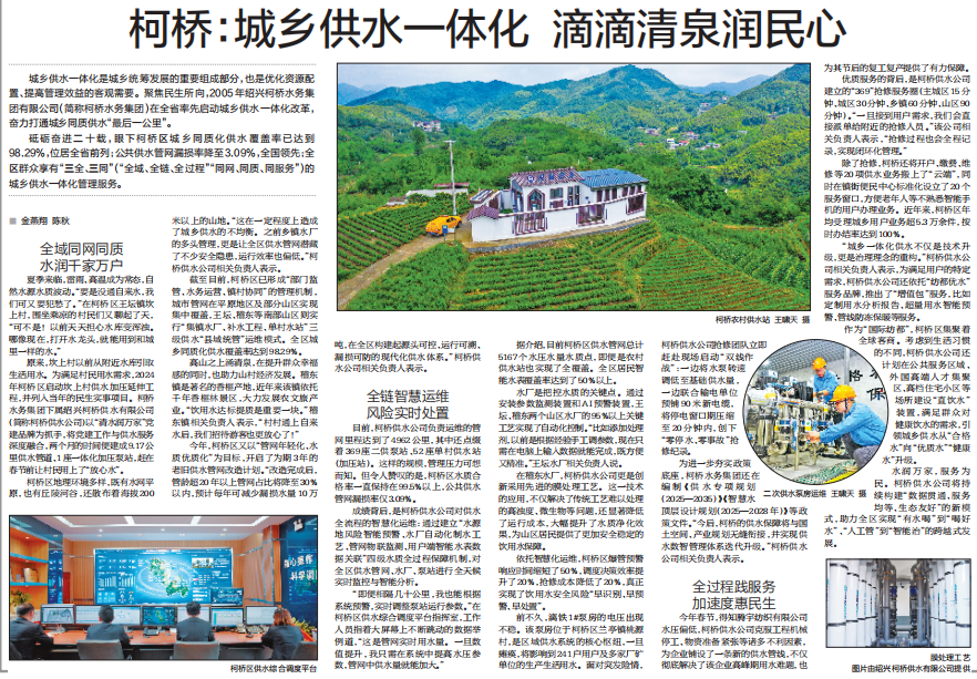 6月26日,《浙江日報》專版刊登《柯橋:城鄉供水一體化 滴滴清泉潤民心》,全面深入報道了柯橋城鄉供水一體化的創新探索與實踐成效。