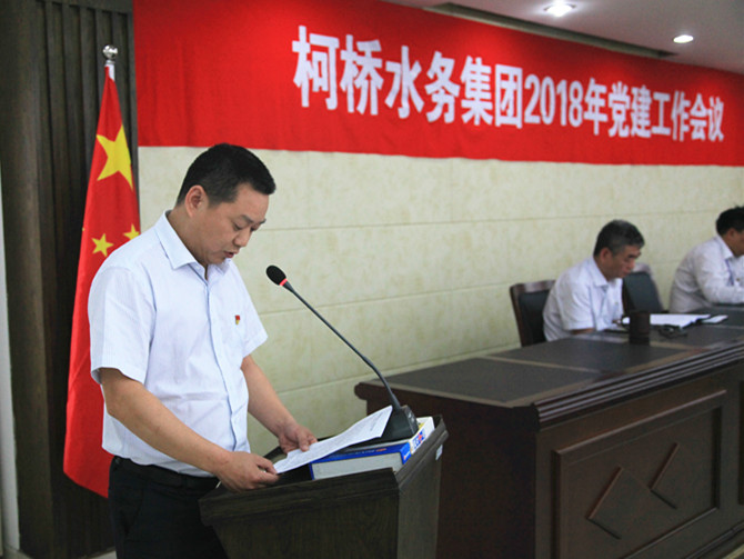 為深入學(xué)習(xí)貫徹黨的十九大、十九屆二中、三中全會(huì)和習(xí)近平總書(shū)記重要講話(huà)精神,認(rèn)真落實(shí)省、市、區(qū)黨建工作各項(xiàng)決策部署,5月8日上午,集團(tuán)公司召開(kāi)了2018年度黨建工作會(huì)議。會(huì)議全面部署新一年集團(tuán)黨建工作,全力開(kāi)創(chuàng)柯橋水務(wù)黨建工作新局面,為推進(jìn)集團(tuán)各項(xiàng)工作提供堅(jiān)實(shí)保障。集團(tuán)公司黨委副書(shū)記、總經(jīng)理單寶子主持會(huì)議,集團(tuán)公司黨委書(shū)記、董事長(zhǎng)周儉作重要講話(huà)。