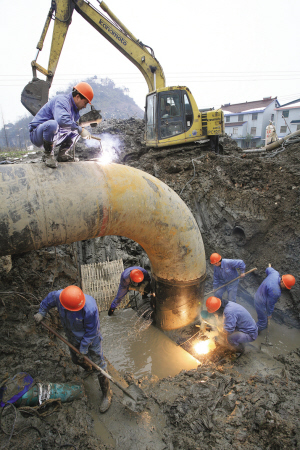 為緩解小舜江供水一期管線日益增加的運行壓力,公司利用冬季供水低谷期,于1月26日成功實施了對小舜江二期供水總管與柯橋泵站1#出廠管連通管兜口作業。