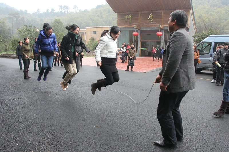 名女職工到農莊歡度節日,跳繩、打球、踢鍵子