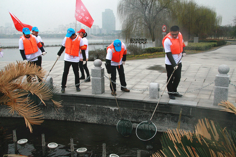 ,開展了以“五水共治,共同參與”為主題的河面清撈活動,志愿者們自帶工具,來到瓜渚湖北岸公園,打撈音樂噴泉水面及湖邊漂浮物,清理環湖路邊垃圾,為改善河湖環境貢獻力量。
